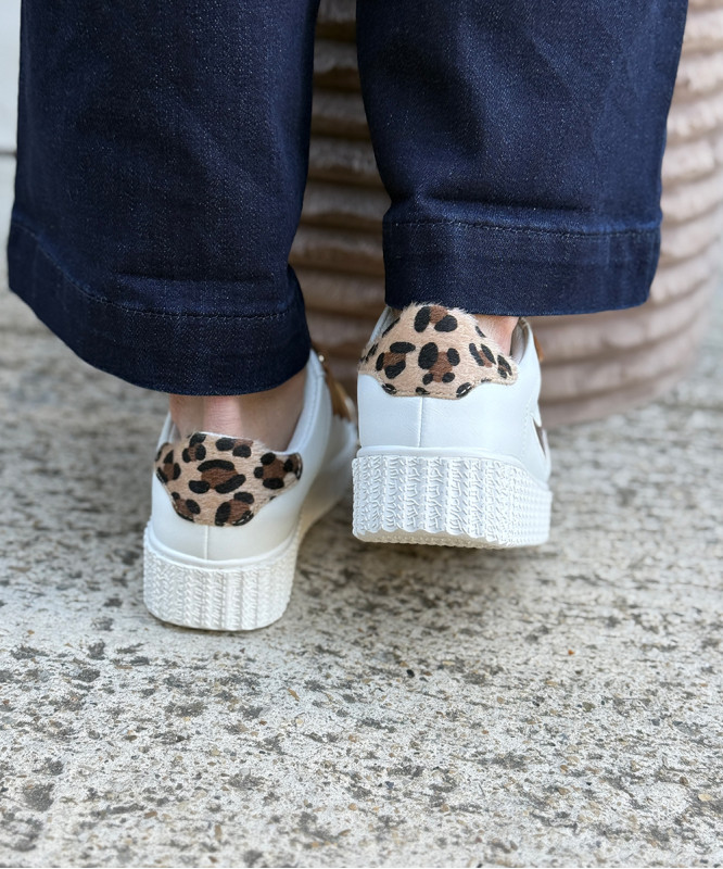 Baskets Vanessa Wu scratch camel et arrière léopard
