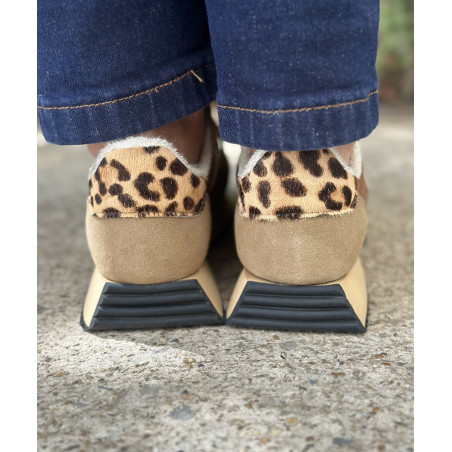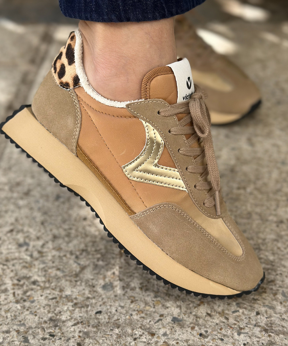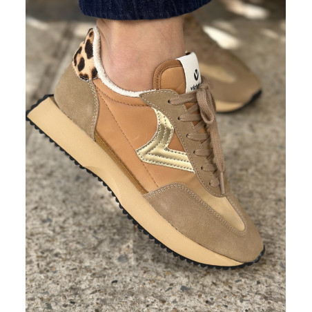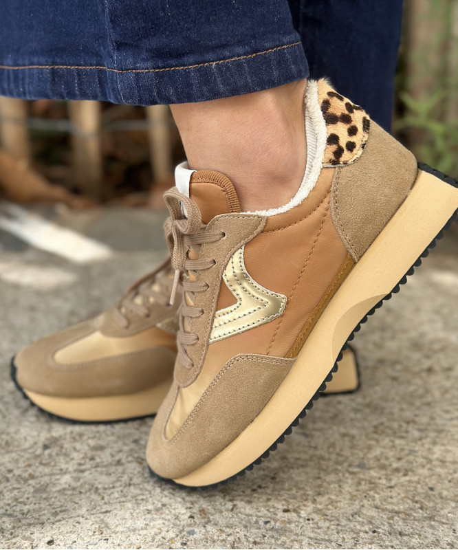 Baskets Victoria beige doré et léopard, semelle style running. Ultra légères, parfaites pour donner un côté sport chic à votre tenue. Prenez votre pointure habituelle.