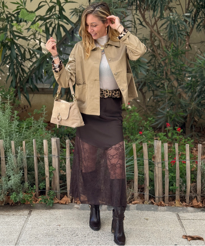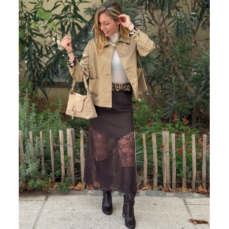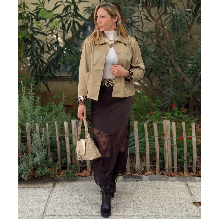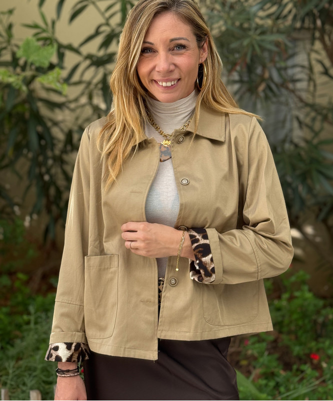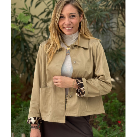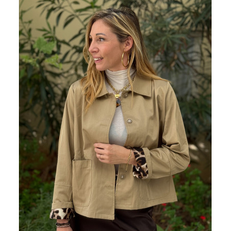 Veste courte beige détails léopard